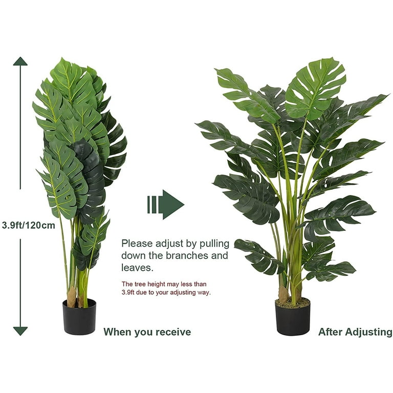 Artificial Monstera Deliciosa Plant 1 2m Tall 15 Leaves Faux Plant Fake Tropical Monstera Palm Tree For Indoor Outdoor Decor 2pcs Walmart Com